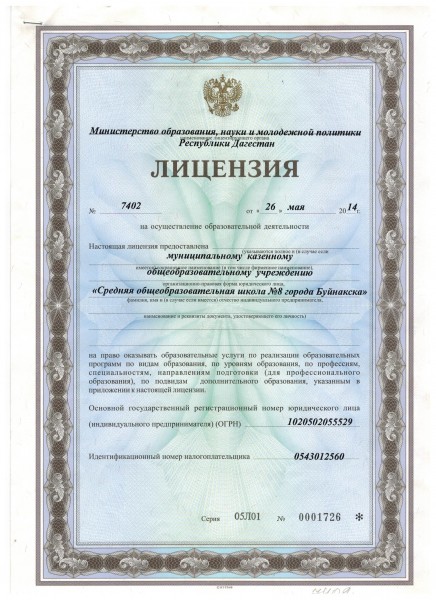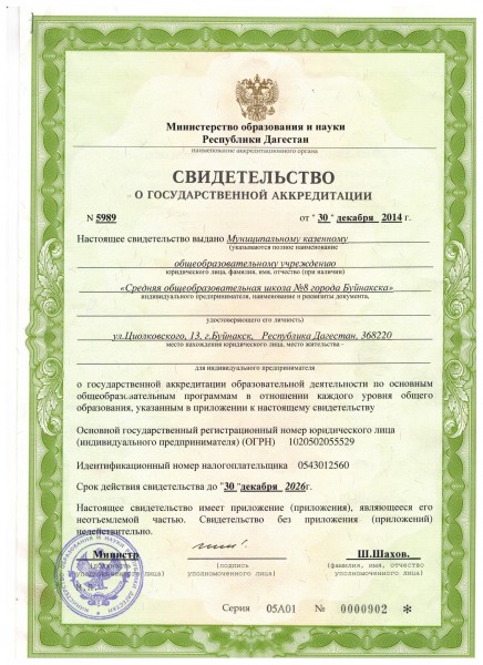 | Полное наименование образовательной организации* | Муниципальное казенное общеобразовательное учреждение "Средняя общеобразовательная школа №8 города Буйнакска" |