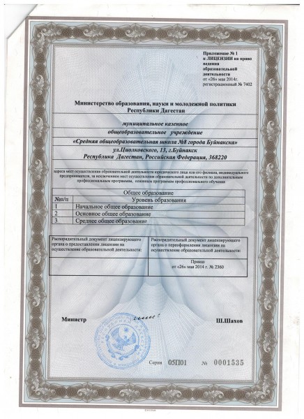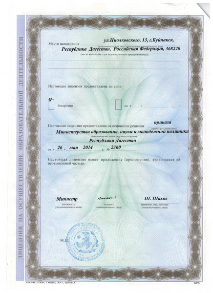 | Адрес местонахождения образовательной организации* | Республика Дагестан, город Буйнакск, улица Циолковского, 13 |
